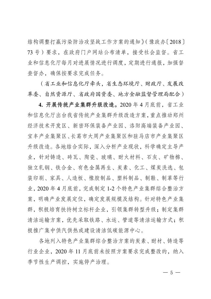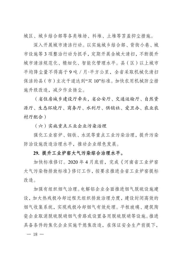 5、2020年4月底前,完成《河南省工業(yè)爐窯大氣污染物排放標(biāo)準(zhǔn)》修訂工作,推進工業(yè)爐窯提標(biāo)改造。