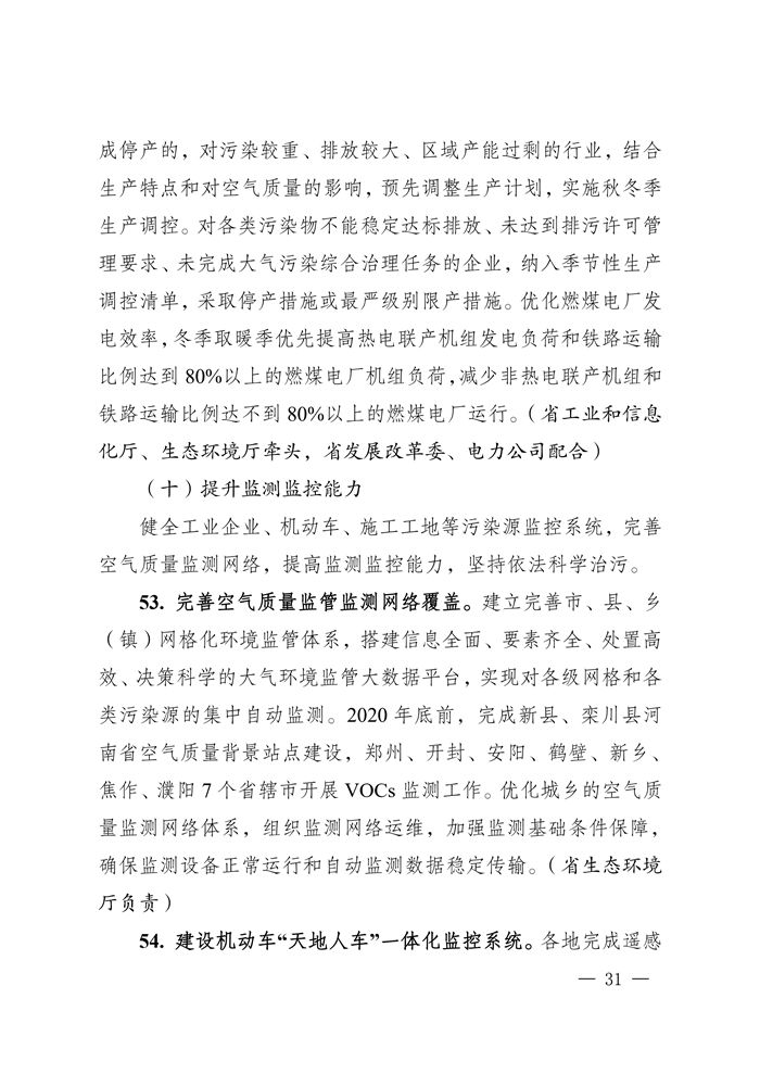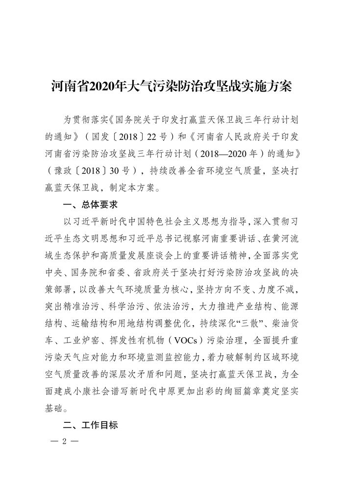 河南省2020年大氣污染防治攻堅戰(zhàn)實施方案