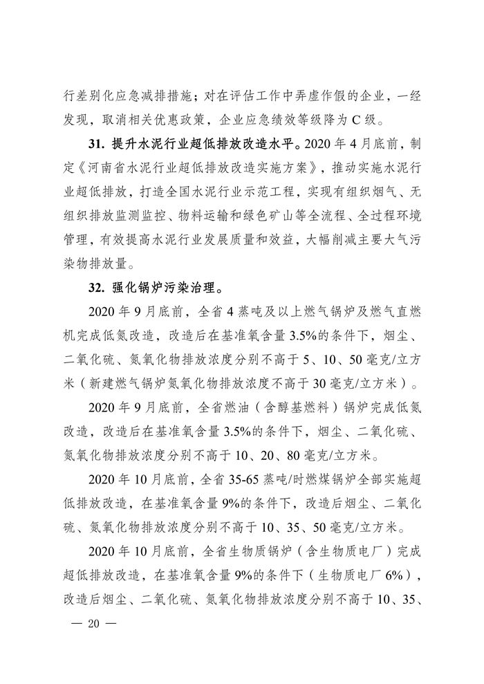 3、2020年4月底前,制定《河南省水泥行業(yè)超低排放改造實施方案》,推動實施水泥行業(yè)超低排放改造。